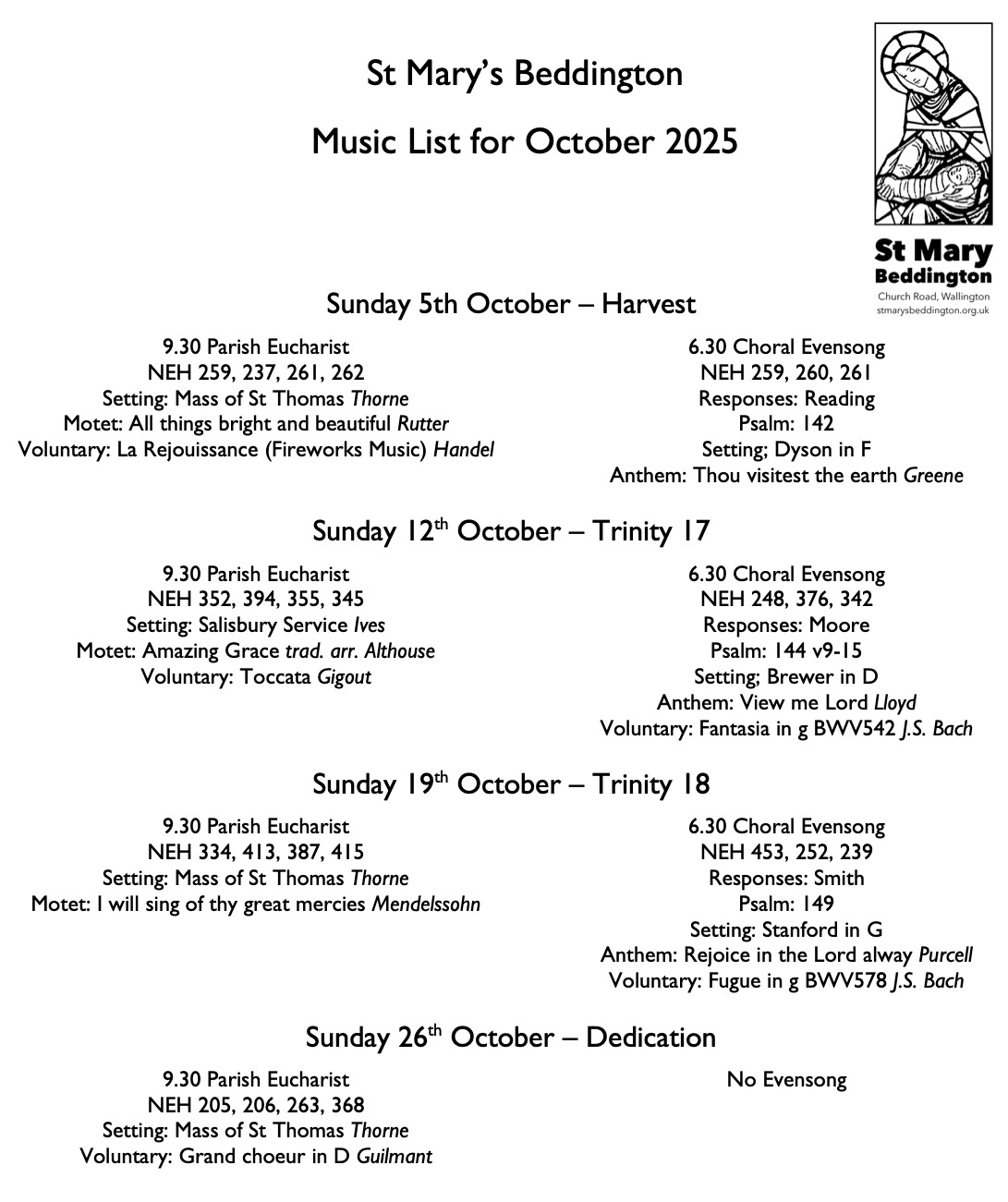To find out more about St Mary’s Choirs contact us at: music@stmarysbeddington.org.uk